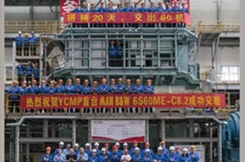 2018年,首臺YCMP-MAN B&W6S60ME-C8.2主機成功交驗,刷新中國低速機裝配速度